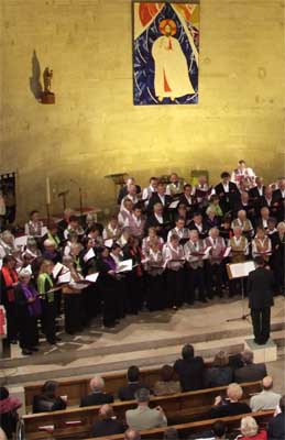 Marie-Dominique Rampal, Vorsitzende des Comité du Jumelage Sorgues, nannte die Jumelage einen Beitrag zur politischen Stabilität Europas. Norbert Schmidt, Vorsitzender der Deutsch-Französischen Gesellschaft Wettenberg, die im Dialog mit der Kommune Träger der Partnerschaft ist, plädierte ein weiteres Mal dafür, Jumelage-Teilhabe von Kindern und Jugendlichen mehr zu fördern, ihnen den Reichtum von Sprach- und Kulturkompetenz vor Augen zu führen. Die Fusion der Gesamtschulen im Gleiberger Land eröffne hierzu neue Chancen. Und er hofft, dass sich die Schulen in Sorgues wieder stärker dem Austausch zuwenden. Norbert Schmidt sagte zu, die DFG werden den Französisch-Unterricht von der fünften Klasse an subventionieren, wenn eine Kind diese Sprache lernen wolle. »Wir sind offen für alle Formen von Sprachfürderung der Kinder unseres Dorfes. Sprache ist der Schlüssel zum Leben, zum Dialog« 26 Titel standen beim Chorkonzert in der Kirche zu Sorgues auf dem Programm, bei dem Marceau Apap und Maryelle Tillié sowie Dennis Amend ihre Chöre dirigierten. Bevor am Ende über 100 Sängerinnen und Sänger den Altarraum ausfüllten bei der mittlerweile 16. Begegnung beider Vereine, hatte jedes Ensemble allein geglänzt. Die Franzosen unter anderem mit »Je m'en vas« (»The Leaving of Liverpool«) und einem selbstverständlichen »Chanter«, die Wettenberger mit geistlicher Klassik von Bach, Schubert, Mendelssohn und Brahms, Liedern aus Afrika sowie den Gospels »Ev'rytime I feel the spirit« und »Get on board«. 1842-Vorsitzender Daniela Schmidt fiel am Ende ein Stein vom Herzen: Geschafft! Die monatelangen Vorbereitungen hatten sich gelohnt.